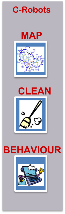 During February and March 2012 we have created of a document describing the capabilities and behavior of the Kompai robot before and after the C-Brain of Cognitive Robots is being installed. The enhanced capabilities are added to the original Kompai GUI with three buttons (figure 1): Map creation, Cleaning, and a Proactive Behavior. It can also be accessed by voice commands.