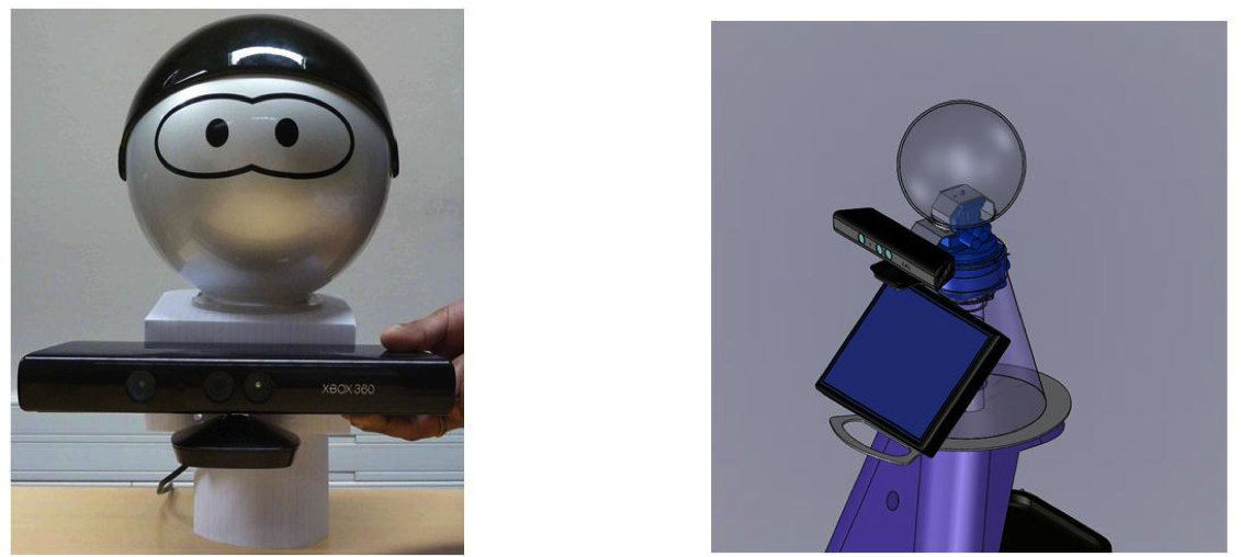 Figure 3. The 3D Kinect sensor integration into the Kompai platform.