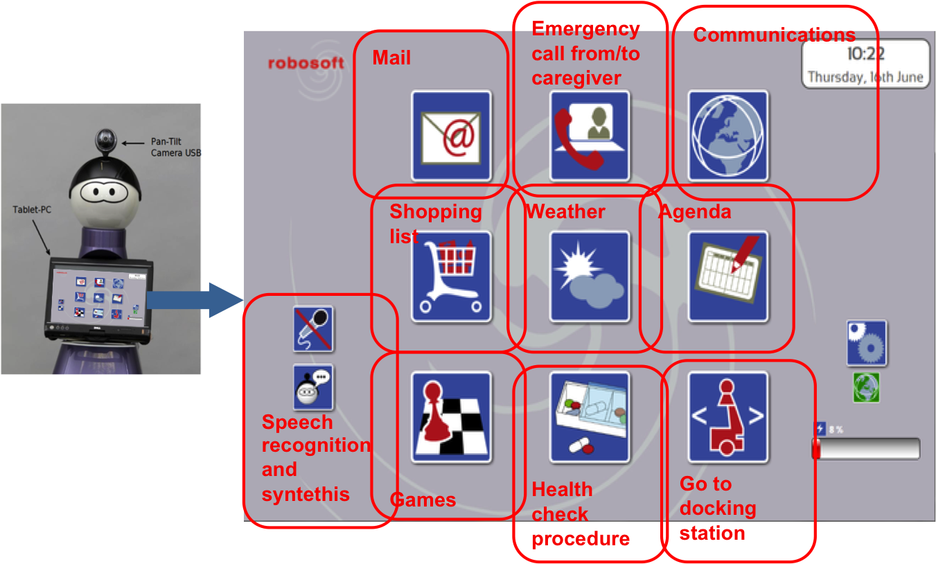 Figure 1. a) Kompai original GUI; b) extention functionalities provided by C-Brain for the project.