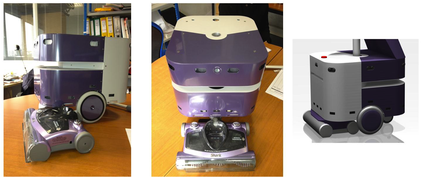 On the other hand, the vacuum cleaner is being physically integrated into the Kompai (figure 2) and the 3D Kincet sensor is being incorporated to the Kompai as well (figure 3).