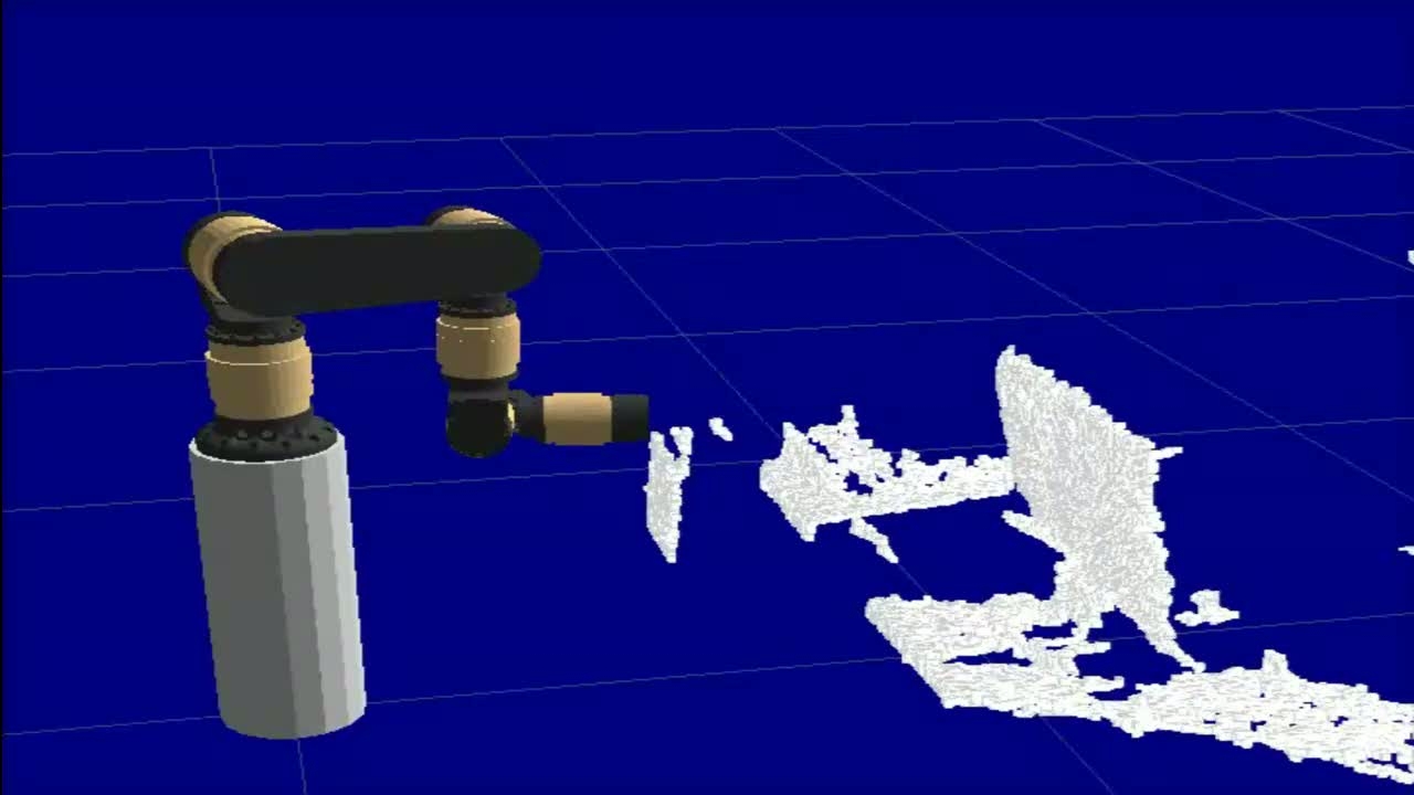 A collision detection algorithm has been implemented in order to prevent collisions between the robot and the objects/people in the environment and with itself. During simulated tests, the system has proved capable of stopping the robot automatically before hitting objects (Figure 1). Improvements can still be made since the collision map is not updated in real time while the robot is moving.