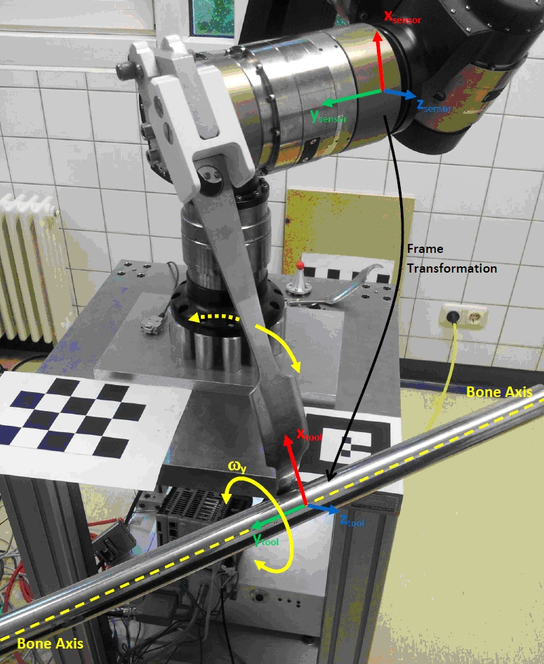 An interface between the FT-sensor and Control PC was established, which enabled us to read the output data of the sensor. With that, the Force-Free Guidance mode was implemented. The user is now able to move the robot freely with his hands in a smooth and precise manner. This method enables the surgeon to manually align the gripper with the tool with high precision, as an alternative to the autonomous method (based on the tool tracking algorithm).