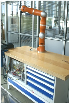 Figure 2: KUKA LWR 4+ mounted on moveable workbench with integrated robot controller
