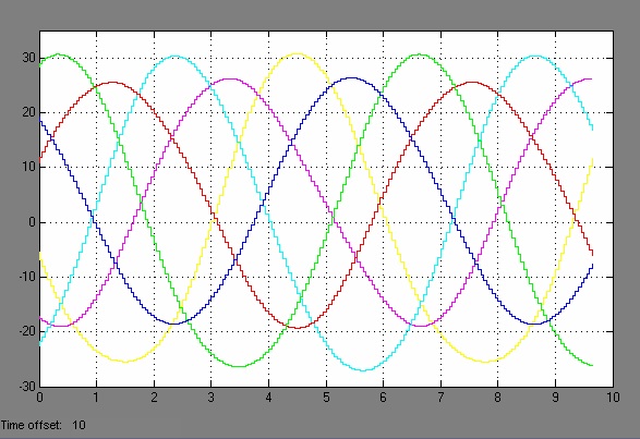 The simulation result shown in this figure displays the output of a sinusoidal phase shifted actuator force input.